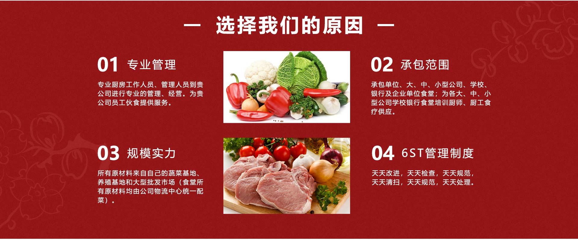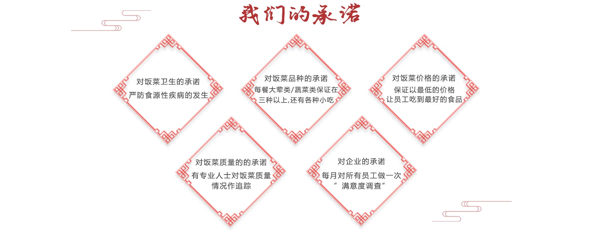 蕪湖名益餐飲管理有限公司是一家從事企事業(yè)單位、醫(yī)院、學(xué)校、工廠(chǎng)食堂伙食承包、蔬菜糧油配送、服務(wù)托管、廚房設(shè)計(jì)投資工程為一體的綜合服務(wù)公司,具有良好的經(jīng)濟(jì)實(shí)力及良好的服務(wù)信譽(yù)。公司于2005年成立與上海,前身為上海紅偉餐飲管理有限公司,2009年進(jìn)軍蕪湖后更名為蕪湖名益餐飲管理有限公司。本公司廣攬烹飪和后勤管理人才,擁有一批訓(xùn)練有素、管理經(jīng)歷豐富的隊(duì)伍及經(jīng)驗(yàn)豐富的廚師,為客戶(hù)提供高素質(zhì)的餐飲服務(wù);統(tǒng)一管理、連鎖經(jīng)營(yíng),為承包大中型企業(yè)飯?zhí)锰峁┝霜?dú)到的優(yōu)勢(shì),公司成立以來(lái),秉著“做事先做人”的處世之道以“誠(chéng)信服務(wù)為本”的經(jīng)營(yíng)理念,設(shè)身處地為廣大客戶(hù)服務(wù),我們把每一位顧客當(dāng)做朋友,我們時(shí)刻關(guān)心他們,我們恪守CARE的含義(COURTESY禮貌ATTENTIVEVESS關(guān)注RESPECT尊重EFFECTIVENESS效率)同時(shí)在全體員工的辛勤努力下,現(xiàn)已成為一家統(tǒng)一管理、連鎖承包、頗具規(guī)模的餐飲服務(wù)公司。我們歡迎您的光臨,并為我們留下寶貴的意見(jiàn)。 [查看更多]